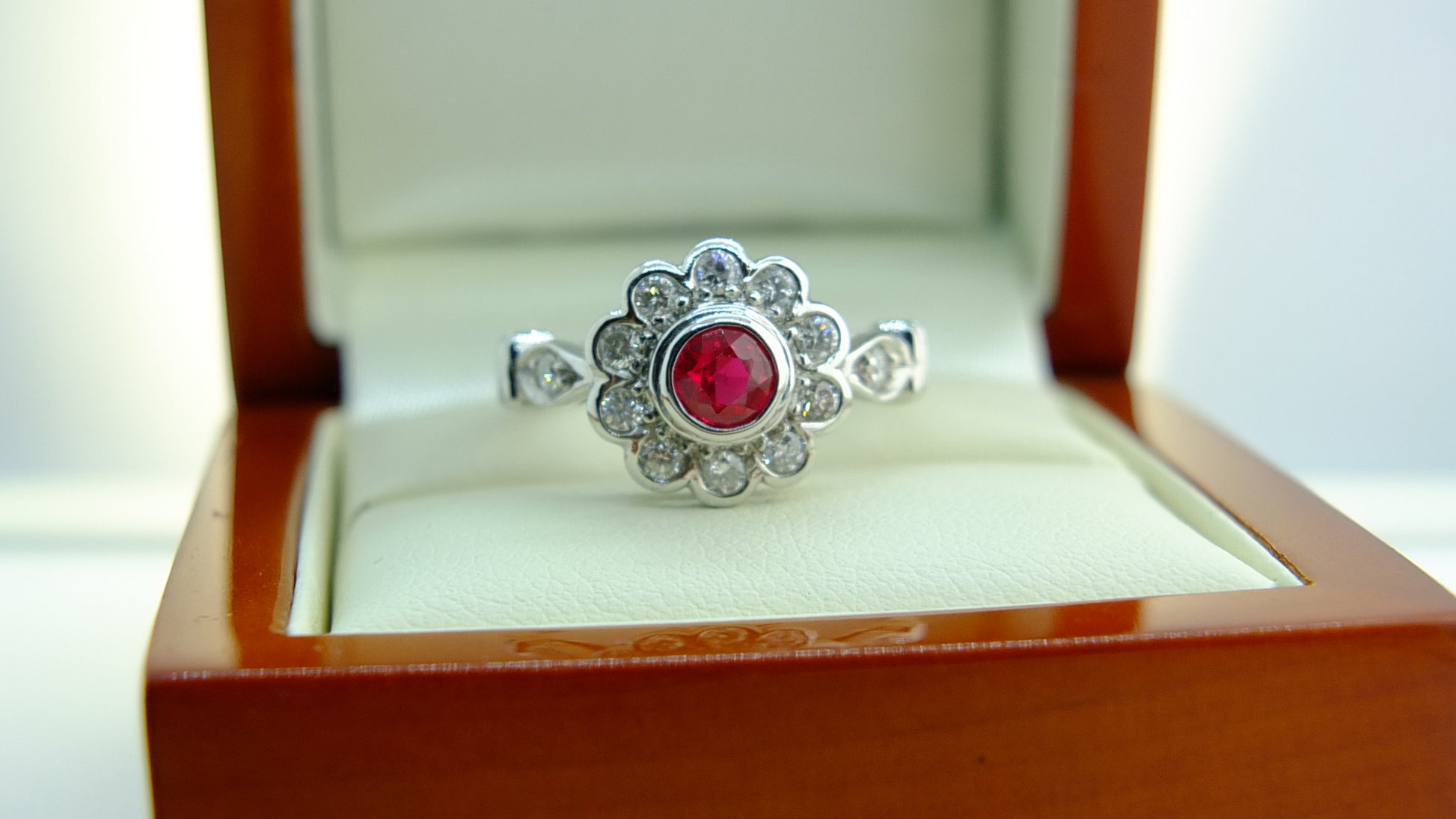 Natural Genuine Ruby and diamonds 18 ct white gold handmade ring