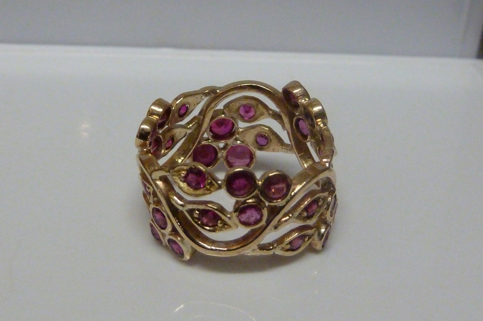 Elegantly designed and crafted to wrap your finger in the simply finery of exquisite design and quality material. Florally inspired with a leave and drop pattern, this subtly striking Ring suits both formal and everyday wear, mind the lustrous 18ct Gold though. All items in this section have been crafted by M.Damuni who owns and runs Celyon Gems & Jewellery. Based in St. Ives, Cambridgeshire with origins in the mysterious and treasure ridden Island of Celyon, Manjula sources from Home the many precious Gems that adorn his works.
